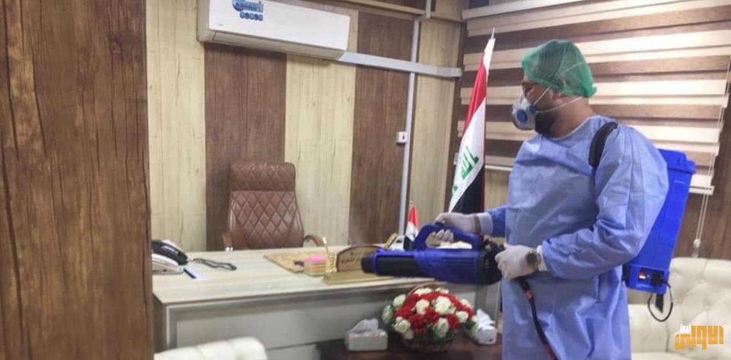 تنفيذاً للأمر الديواني رقم ٥٥ لسنة٢٠٢٠ وحسب توجيهات معالي وزير الداخلية السيد عثمان الغانمي، وبإشراف مدير عام الاحوال المدنية والجوازات والاقامة اللواء رياض جندي الكعبي، وجه العميد الحقوقي صلاح مهدي جبار مدير شؤون البطاقة الوطنية بالتعاون مع مديرية الخدمات الطبية، باجراء حملة تعفير وتعقيم في المديرية وتوابعها كافة، وتمت حملة التعفير بمادة ( الفيركون) للحد من انتشار فايروس كورونا المستجد واتخاذ التدابير الاحترازية، والتأكيد على ارتداء الكمامات والقفازات حفاظاً على سلامة الجميع.