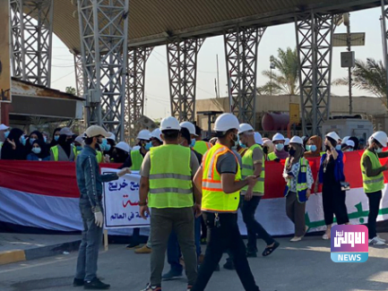 افاد مصدر ، الثلاثاء، باستمرار احتجاج خريجي الهندسة امام شركة نفط البصرة للمطالبة بتعيينهم، فيما منعوا الموظفين من الدخول.