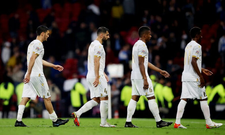 خلال مباراة اسكتلندا.. لاعب منتخب أرمينيا يقذف الحكم المساعد ويفلت من العقاب