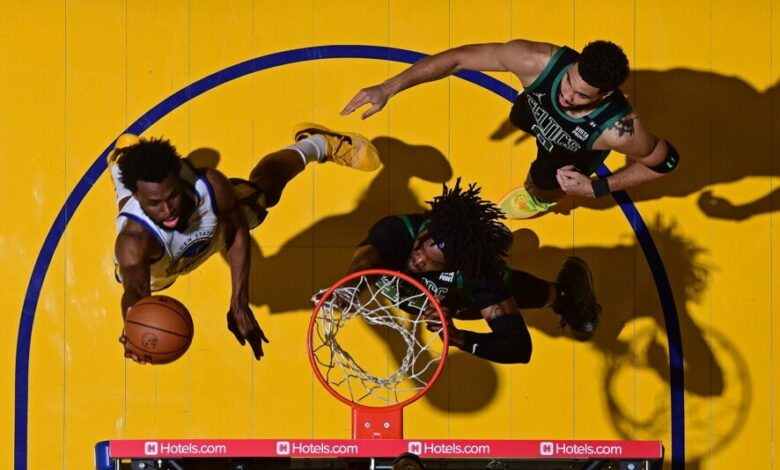 حقق أندرو ويجينز رقمين مزدوجين ليقود جولدن ستيت وريورز للفوز 104-94 على بوسطن سيلتيكس الليلة الماضية ويصبح على بعد انتصار واحد من لقب دوري كرة السلة الأمريكي للمحترفين.