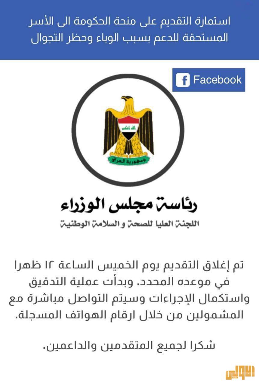 رئاسة الوزراء :تم اغلاق التقديم على منحة الطوارئ