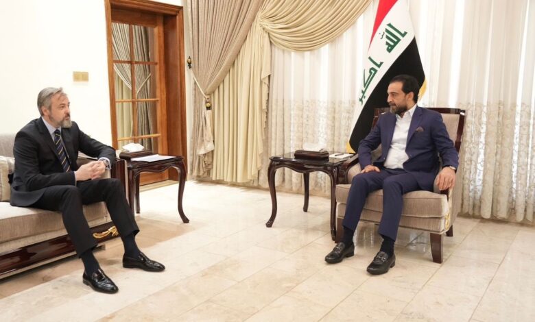 وقال المكتب الإعلامي لرئيس مجلس النواب في بيان تلقته (الاولى نيوز): إن” رئيس مجلس النواب محمد الحلبوسي، استقبل في لقاءات منفصلة، كلاً من السفيرِ الصربي اوروش بالوف، والسفيرِ الياباني فوتوشي ماتسوموتو، والسفيرةِ الأسترالية بولا إليزابيث غانلي”.