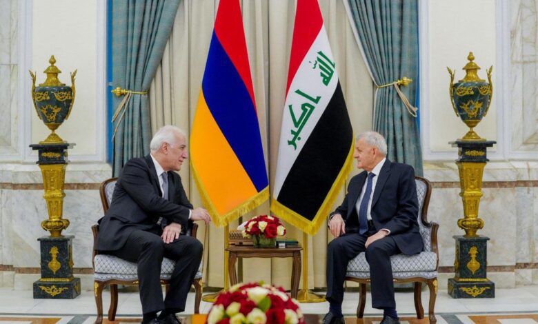 وأكد الرئيس الأرميني “حرص بلاده على تمتين العلاقات مع العراق، وفتح آفاق جديدة لها في شتى الميادين، والتنسيق في جميع القضايا ذات الاهتمام المشترك”.