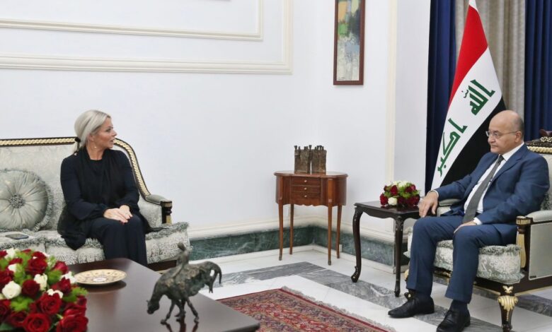أكد رئيس الجمهورية برهم صالح، اليوم الأربعاء، أن الظروف الحالية تستدعي التزام التهدئة والدخول في حوار صادق، فيما أكدت ممثلة الأمين العام للأمم المتحدة في العراق جينين بلاسخارت دعم وتأييد بعثة الامم المتحدة للحوار بين كافة الأطراف العراقية.