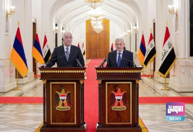 وقال الرئيس رشيد خلال مؤتمر صحفي مع نظيره الأرميني فاهاكن خاتشاتوريان، تابعته (الاولى نيوز): “بحثنا سبل تعزيز العلاقات الثنائية بين العراق وأرمينيا، والدفع بمسار التعاون المشترك في مختلف المجالات الاقتصادية والتجارية والاستثمارية، والعلمية، والتقنية والتكنولوجية، وكذلك في مجالات الصحة والتعليم والشباب والسياحة والثقافة، فضلا عن إلغاء تأشيرة سمات الدخول”.