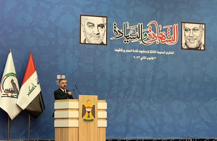 وقال الرئيس رشيد في كلمته ألقاها نيابة عنه عبد الله العلياوي، خلال المحفل الرسمي بمناسبة الذكرى السنوية الثالثة لاستشهاد قادة النصر، والذي أقيم في فندق الرشيد ببغداد، وتابعته (الاولى نيوز)، ان “استهداف الشهيدين ابو مهدي المهندس وقاسم سليماني، هو ضرب لكل الضوابط الاخلاقية والقانونية والسياسية، مما يؤكد عظمة واهمية وتاثير هذين القائدين في احباط مخططات العدو ويؤكد ان المنهج الذي سار عليه إنما هو المنهج الصحيح لنهضة الأمم المقاومة ولتحقيق ذاتها”.