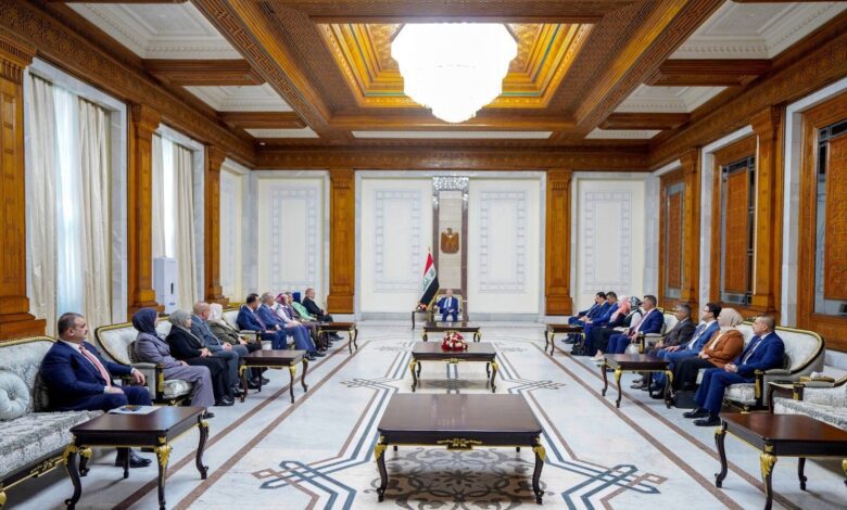 وأكد “أهمية تنشيط عمل مجلس النواب لتشريع وإقرار القوانين ذات التماس المباشر بحياة المواطنين ومن بينها قانون المجلس الأعلى للمياه وقانون المحكمة الاتحادية العليا وقانون الهيئة العليا لتمكين المرأة وقانون مجلس الاتحاد”، مشدداً “على لزوم وضع مصالح الشعب فوق كل الاعتبارات”.