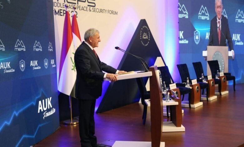 وذكر مكتبه الإعلامي في بيان تلقته (الاولى نيوز): أن “رئيس الجمهورية عبد اللطيف جمال رشيد شارك في منتدى الشرق الأوسط للسلام والأمن الذي تقيمه الجامعة الأمريكية في محافظة دهوك وكان في استقبال رئيس حكومة إقليم كردستان مسرور بارزاني، فضلا عن مشاركة رئيس مجلس النواب محمد الحلبوسي ورئيس حكومة إقليم كردستان مسرور بارزاني والنائب الثاني لرئيس مجلس النواب شاخوان عبد الله وعدد كبير من المسؤولين والباحثين والأكاديميين”.