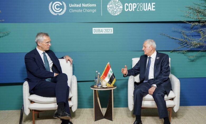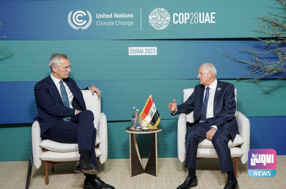 وقال بيان للرئاسة، تلقته (الاولى نيوز ): إنه “على هامش أعمال مؤتمر قمة الأمم المتحدة للمناخ (كوب 28)، التقى رئيس الجمهورية عبد اللطيف جمال رشيد، في دبي، أمين عام حلف شمال الأطلسي الناتو ينس ستولنبيرغ، بحضور وزير الخارجية فؤاد حسين ووزير البيئة نزار ئاميدي”.