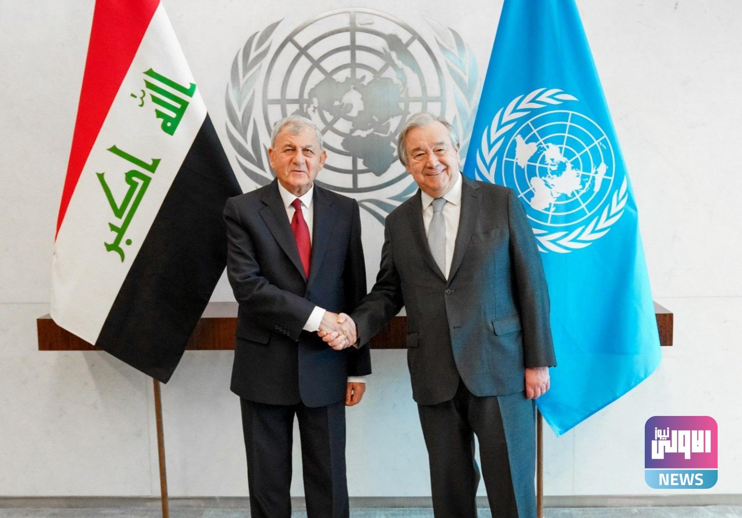 بحث رئيس الجمهورية عبد اللطيف جمال رشيد، مع الأمين العام للأمم المتحدة أنطونيو غوتيريش، ظاهرة التصحر والجفاف وأزمة المياه.