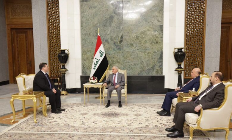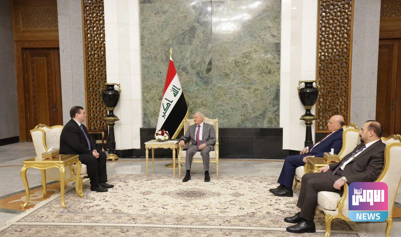 وأكد رئيس الجمهورية، خلال لقاء السفراء كلاً على حدة، “سعي العراق إلى تطوير علاقاته وتعزيز التعاون الثنائي مع دولهم وبما يخدم المصالح المشتركة”، مشيراً إلى “ضرورة تنسيق الجهود لمواجهة التحديات الاقتصادية والأمنية والتغيرات البيئية والمناخية”.