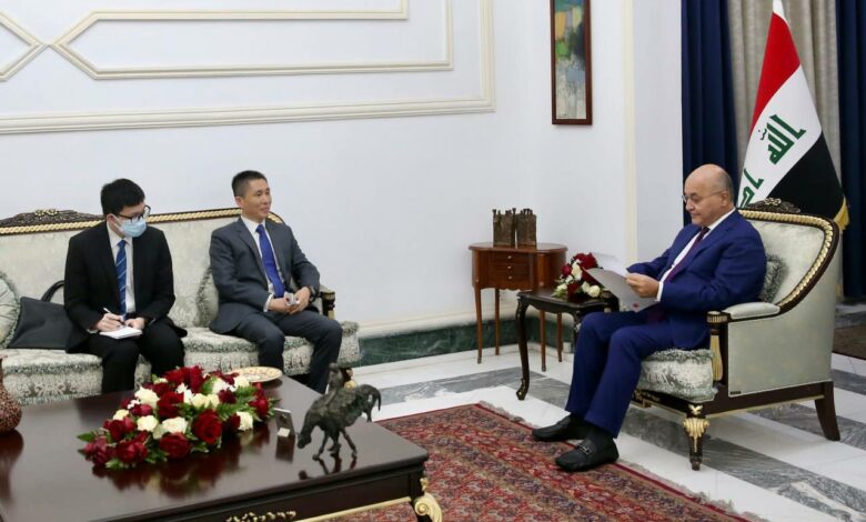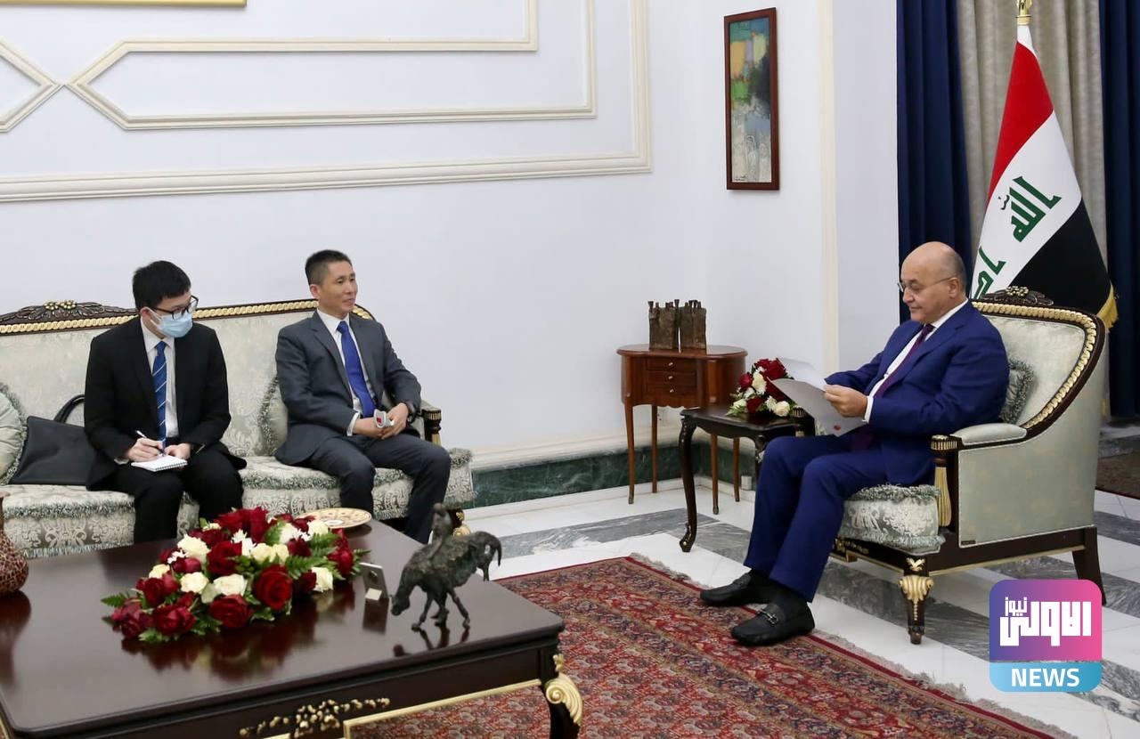 تسلم رئيس الجمهورية برهم صالح، اليوم الخميس، رسالة نصية من السفير الصيني في بغداد، فيما بحث الطرفان أهمية توسيع افاق التعاون المشترك بين البلدين.
