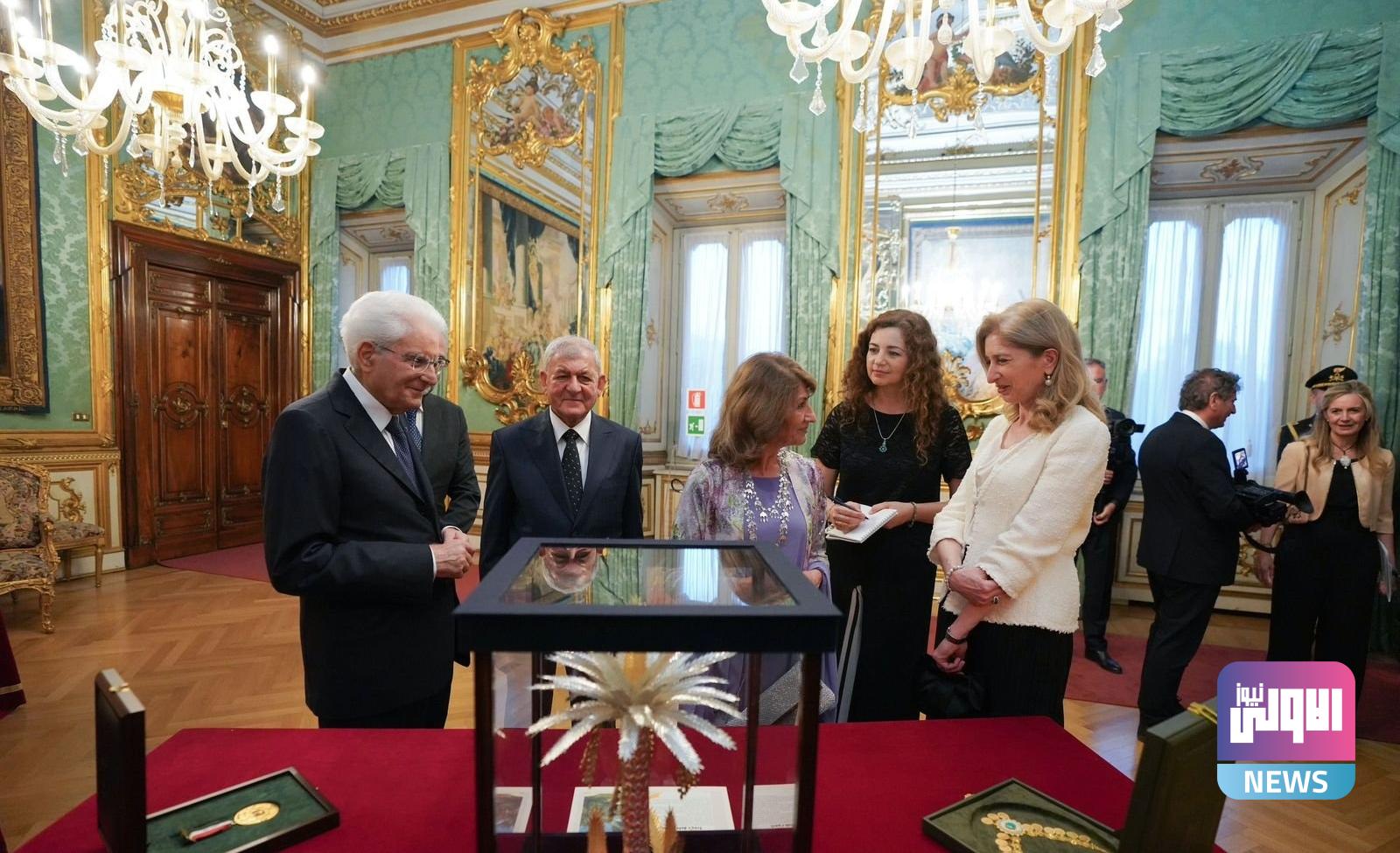 وذكر بيان لرئاسة الجمهورية تلقته (الاولى نيوز)، أن “رئيس الجمهورية عبد اللطيف جمال رشيد تقلد اليوم، الوسام الأعظم من الدرجة الأولى من قبل رئيس الجمهورية الإيطالية سيرجيو مارتاريلا، في قصر كويريناله في العاصمة روما”، مبينةً أن “هذا الوسام هو الارفع ويهدى إلى الرؤساء تقديراً للرئيس وتجسيداً للعلاقات التاريخية المُتأصلة بين البلدين”.