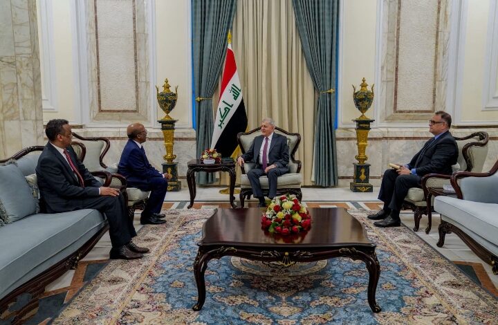 وقالت رئاسة الجمهورية في بيان تلقته (الاولى نيوز)، ان “رئيس الجمهورية عبد اللطيف جمال رشيد استقبل، اليوم، في قصر بغداد، سفير جمهورية الصومال لدى العراق ليبان شيخ محمود”، مبيناً ان “السفير محمود نقل دعوة رسمية إلى الرئيس من الرئيس الصومالي حسن شيخ محمود لزيارة الصومال، فضلاً عن تحياته وشكره لمواقف العراق الإيجابية دائما مع الصومال الشقيق، وتمنيات الرئيس الصومالي بأن يُعاد افتتاح السفارة العراقية في مقاديشو”.
