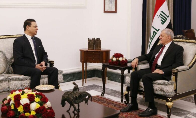وذكر بيان لرئاسة الجمهورية تلقته (الاولى نيوز)، أن”رئيس الجمهورية عبد اللطيف جمال رشيد، استقبل اليوم في قصر السلام ببغداد، سفير جمهورية مصر العربية لدى العراق وليد محمد إسماعيل”، مبيناً أن “السفير المصري سلّم خلال اللقاء رئيس الجمهورية رسالة من الرئيس المصري عبد الفتاح السيسي تتضمن دعوة رسمية للمشاركة في قمة قادة العالم التي ستعقد في شرم الشيخ في دورتها (27) لمؤتمر أطراف اتفاقية الأمم المتحدة الإطارية لتغير المناخ”.
