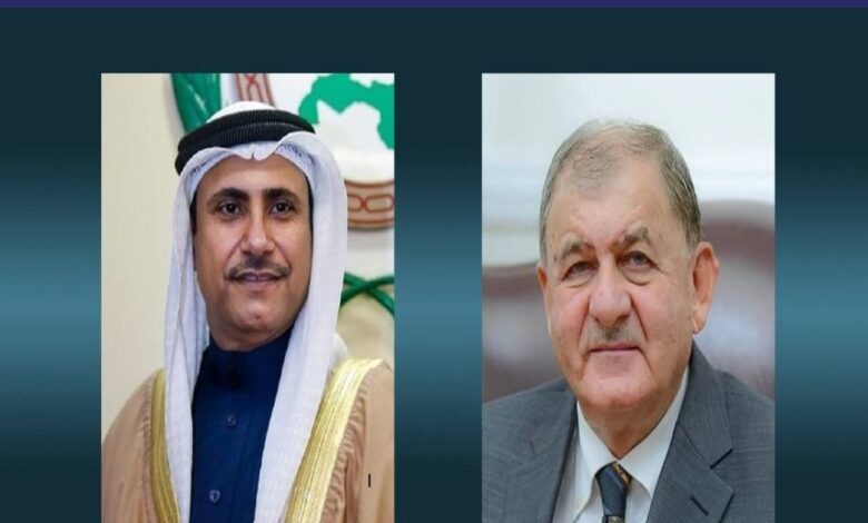 يشرفني باسمي ونيابة عن كافة أعضاء البرلمان العربي أن أتقدم لمقام فخامتكم الكريم بخالص التهاني وعظيم التبريكات مقرونة بأطيب التمنيات بمناسبة انتخاب فخامتكم رئيساً لجمهورية العراق، في استحقاق دستوري هام أظهر عزيمة الشعب العراقي العزيز القوية، مهنئين فخامتكم على هذه الثقة الغالية.