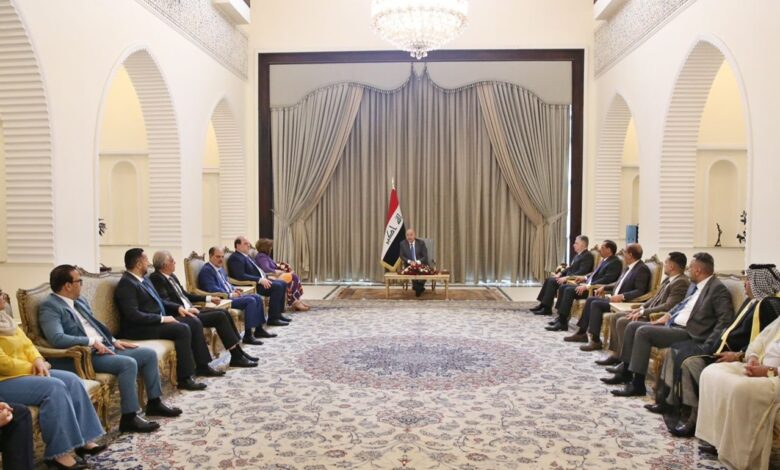 وقالت رئاسة الجمهورية في بيان تلقته (الاولى نيوز )، ان “رئيس الجمهورية برهم صالح استقبل، اليوم في قصر السلام ببغداد، مجموعة من رؤساء وممثلي النقابات والاتحادات العراقية، حيث جرى بحث تطورات الأوضاع في البلاد”.