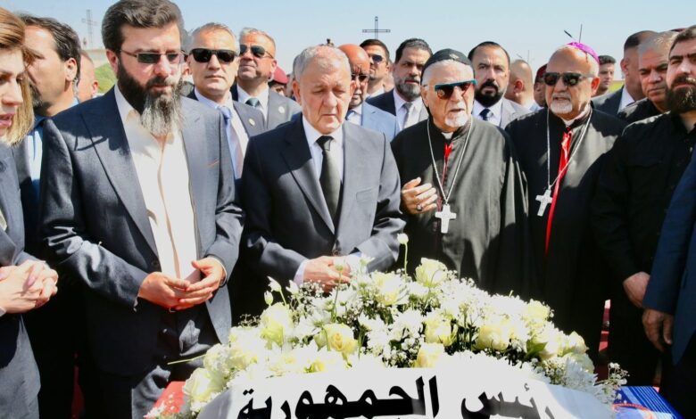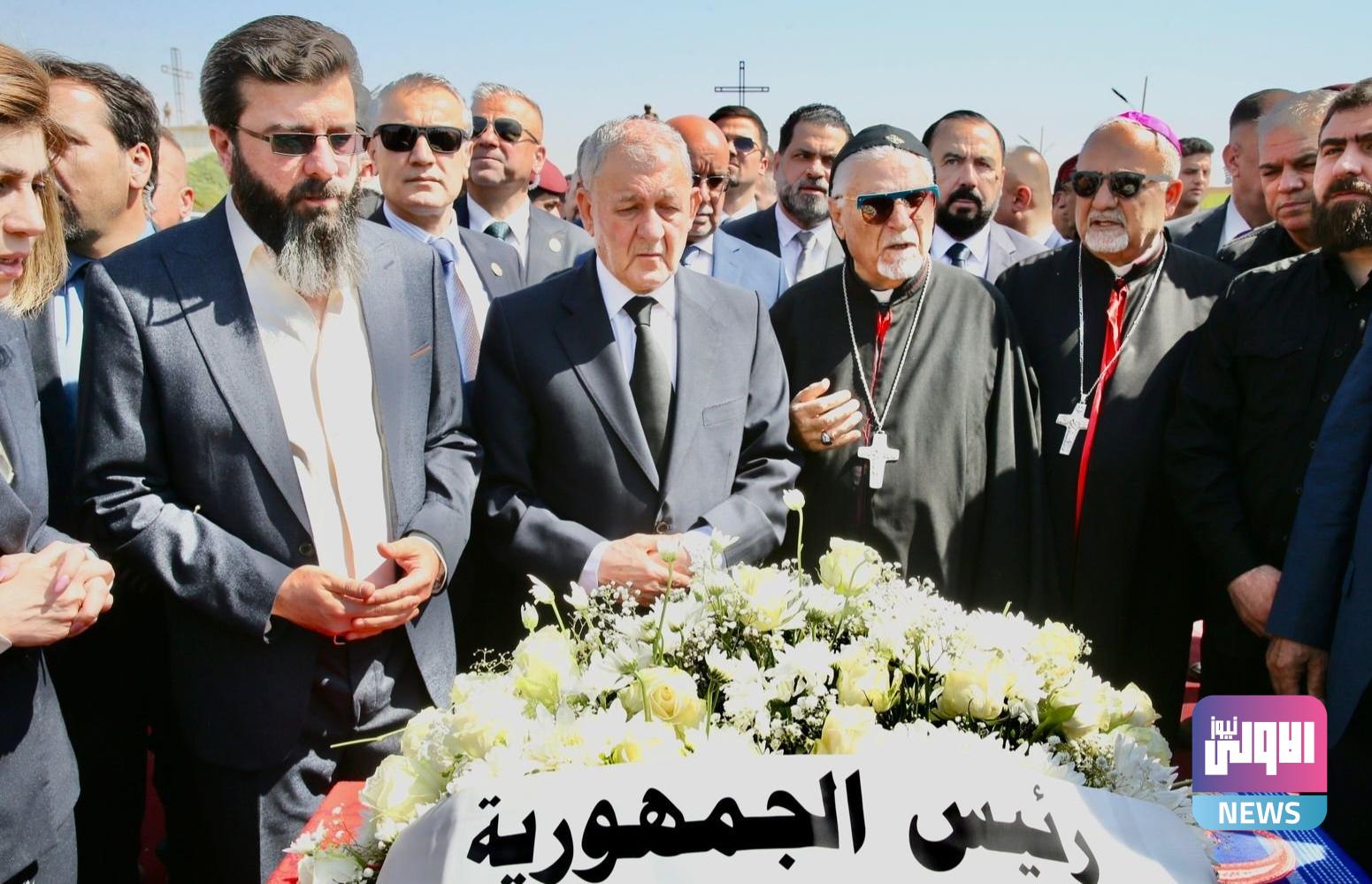 وذكر بيان لرئاسة الجمهورية تلقته (الاولى نيوز)، أن “رئيس الجمهورية يرافقه كلاً من وزير الصحة الدكتور صالح الحسناوي، ووزيرة الهجرة والمهجرين إيڨان فائق جابرو، ومحافظ نينوى نجم عبد الله الجبوري، إضافة إلى عدد من كبار المسؤولين والأساقفة في المحافظة زار مقبرة القيامة في قضاء الحمدانية”.