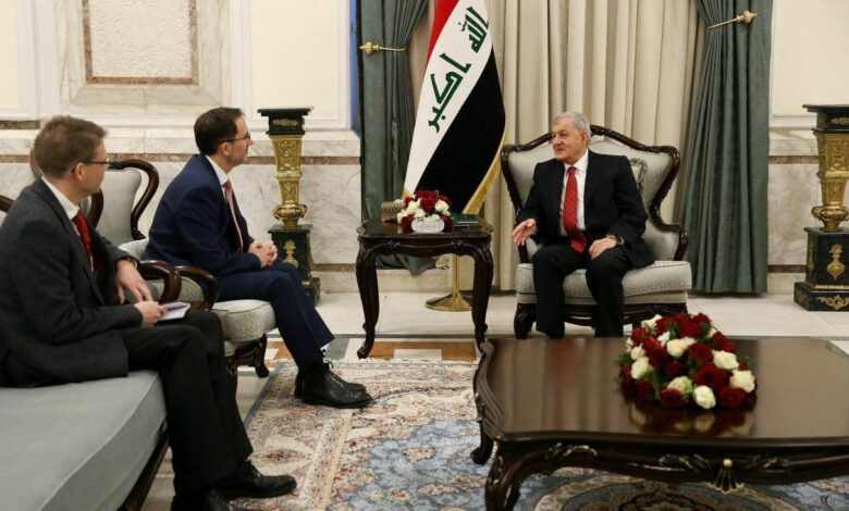 وقالت رئاسة الجمهورية في بيان تلقته (الاولى نيوز )، ان “رئيس الجمهورية عبد اللطيف جمال رشيد استقبل، اليوم، في قصر بغداد، السفير البريطاني لدى العراق مارك برايسون ريتشاردسون”، مبينا ان “الرئيس تحدث خلال اللقاء عن زيارتيه إلى محافظتي البصرة ونينوى للاطلاع على أوضاعهما من الناحية الأمنية والخدمية ومتابعة الإنجازات المتحققة في تطوير بناها التحتية والجامعات والمحاكم والطرق والجسور”.