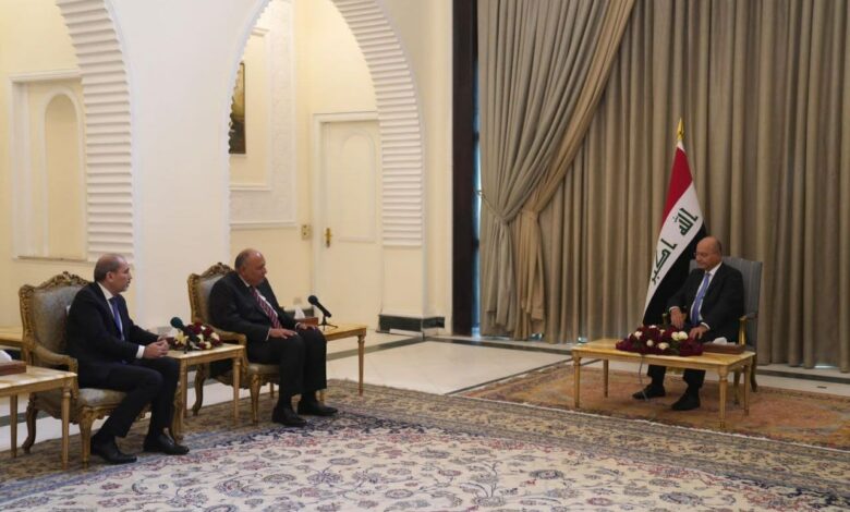 وأكد رئيس الجمهورية “حرص العراق على تعزيز العلاقات مع مصر والأردن في مختلف المجالات، وتوسيعها عبر التفاهمات وأطر التعاون الثلاثي المُتفق عليها، في المجالات السياسية والأمنية والاقتصادية، وتنسيق المواقف من أجل إرساء الأمن والاستقرار في المنطقة”، لافتاً إلى أن “أمن العراق واستقراره وموقعه الجغرافي بين جيرانه وأشقائه عنصر لا غنى عنه لأمن المنطقة”.