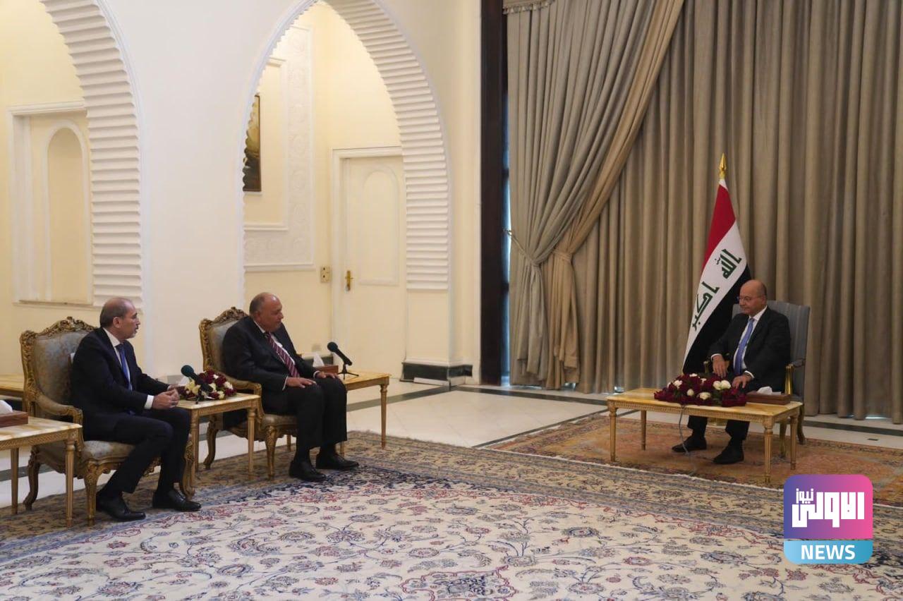 بدورهما، نقل الوزيران “تحيات الرئيس المصري عبد الفتاح السيسي والملك عبد الله الثاني إلى الرئيس برهم صالح”، فيما حمّل رئيس الجمهورية الوزيرين “تحياته إلى أخيه الرئيس السيسي وأخيه الملك عبد الله الثاني”.