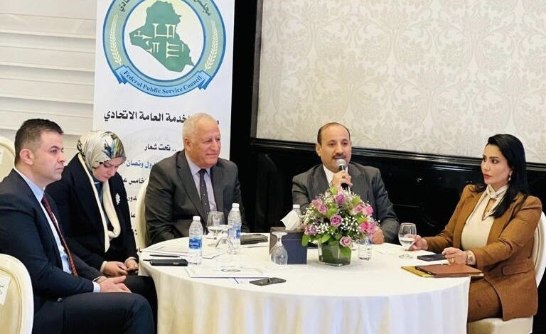 وأضاف، أن “العطواني أشار إلى ضرورة أن تأخذ القوانين المشرعة مسار التنفيذ الفعلي والتطبيق الواقعي لتنظيم العلاقة بين المواطن ومؤسسات الدولة”، مبيناً أنه “في ختام الندوة، شارك العطواني بفقرة تكريم عدد من موظفي مجلس الخدمة الاتحادي المتميزين في عملهم، متمنياً لهم مزيد من النجاح والتفوق في أداء المهام الموكلة إليهم خدمة لعراقنا الحبيب”.