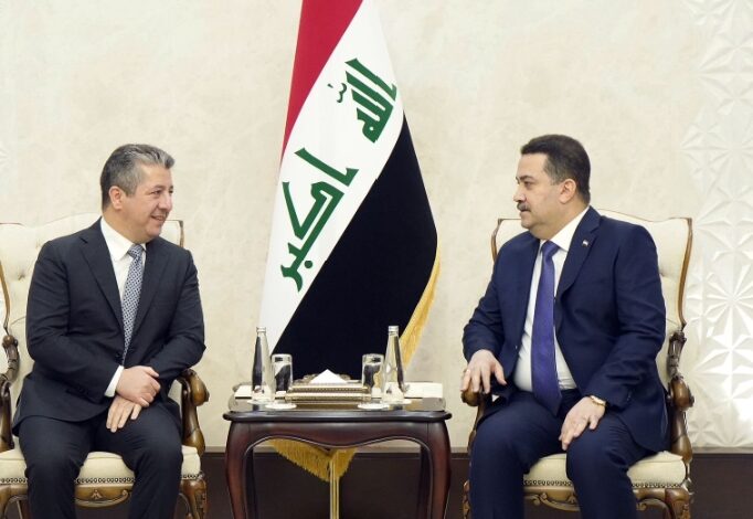 وذكر المكتب الإعلامي لرئيس مجلس الوزراء في بيان تلقته (الاولى نيوز)، أن “رئيس مجلس الوزراء محمد شياع السوداني، استقبل اليوم الخميس، رئيس حكومة إقليم كردستان مسرور بارزاني، ونائب رئيس حكومة الإقليم قباد طالباني والوفد المرافق لهما”، مبيناً أنه “جرى خلال اللقاء، التأكيد على ضرورة إيجاد حل للمشاكل القانونية والمالية بين الحكومة الاتحادية وحكومة الإقليم، وفقاً للدستور والقانون”.