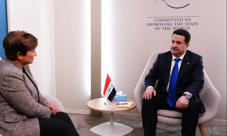 وذكر المكتب الإعلامي لرئيس مجلس الوزراء، في بيان تلقته (الاولى نيوز)، أن “رئيس مجلس الوزراء محمد شياع السوداني، التقى المديرة العامة لصندوق النقد الدولي كريستالينا جورجييفا، وذلك على هامش مشاركته في منتدى دافوس الاقتصادي المنعقد في سويسرا”.