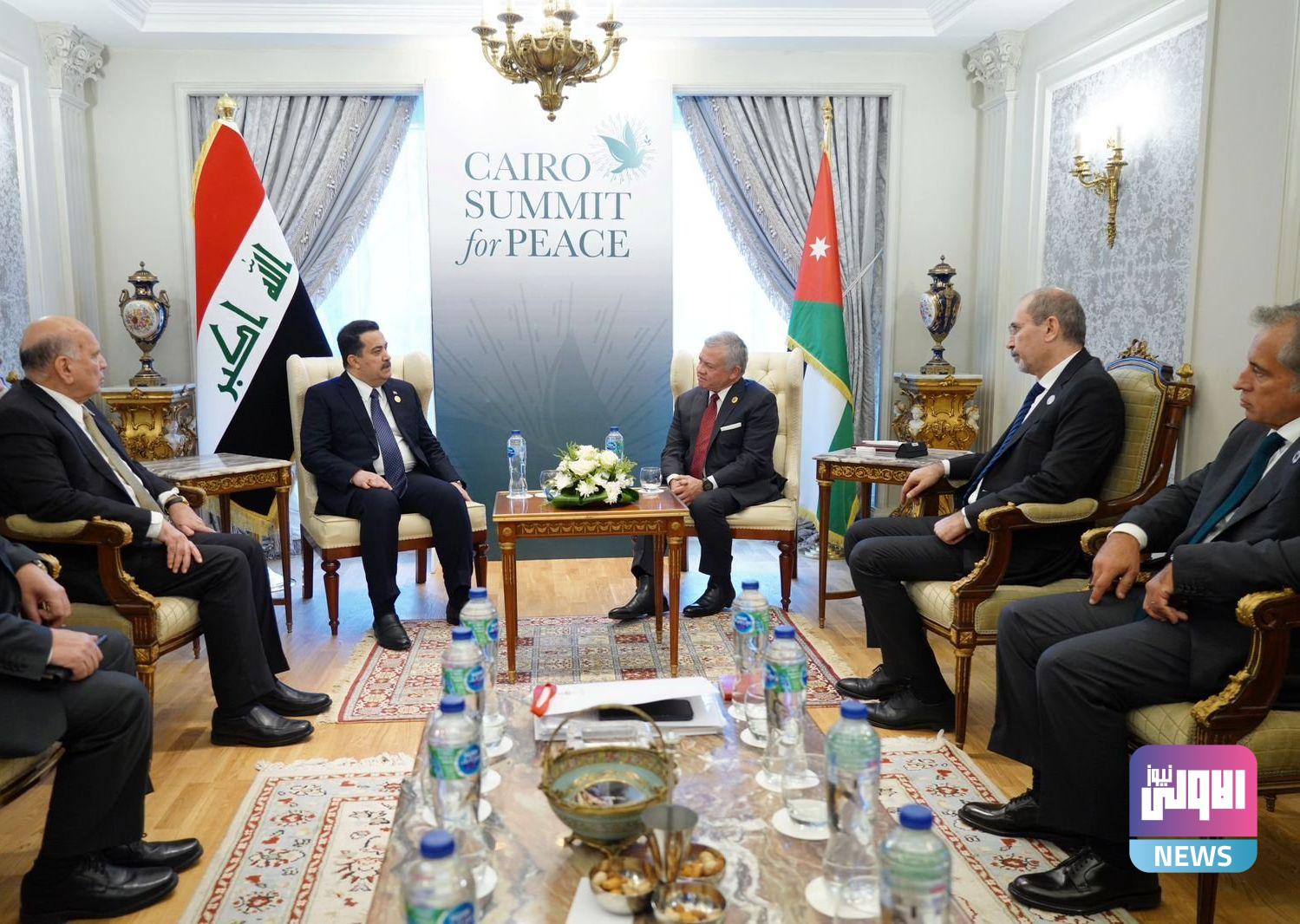 وقال المكتب الإعلامي لرئيس مجلس الوزراء في بيان تلقته (الاولى نيوز): إن “رئيس مجلس الوزراء محمد شياع السوداني، التقى عاهل المملكة الأردنية الهاشمية، الملك عبد الله الثاني بن الحسين، في العاصمة المصرية القاهرة، وذلك على هامش المشاركة في مؤتمر قمّة القاهرة للسلام؛ لبحث تطوّرات الأحداث في الأراضي الفلسطينية المحتلة”.