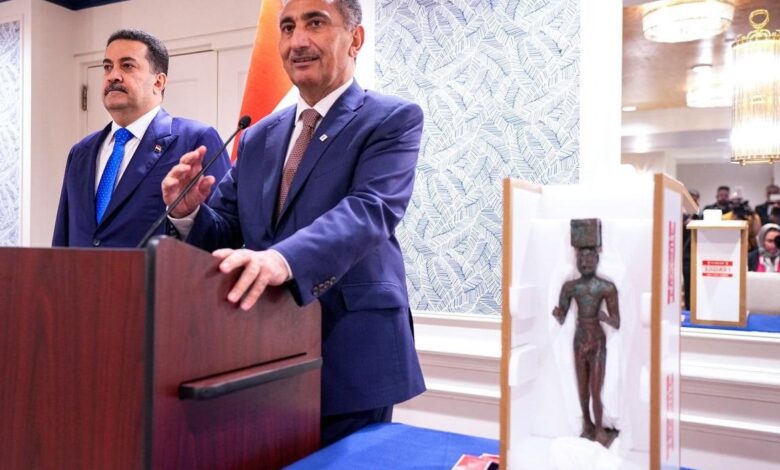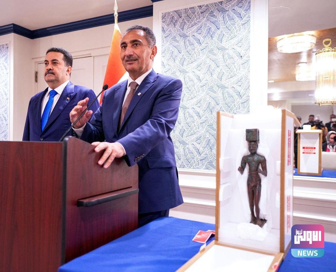 تسلم رئيس مجلس الوزراء محمد شياع السوداني، قطعة أثرية رافدينية تعود للعصر السومري من متحف المتروبوليتان في نيويورك.