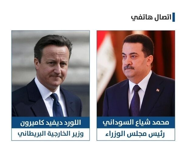 وتابع البيان، أن “كاميرون أكد حرص الحكومة البريطانية على إقامة أفضل العلاقات الثنائية مع العراق، وتوسعة آفاق التعاون، بما يعود بالنفع على المصالح المشتركة وتدعيم جهود الاستقرار في المنطقة”.