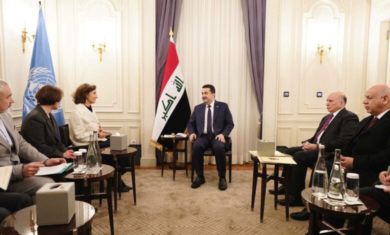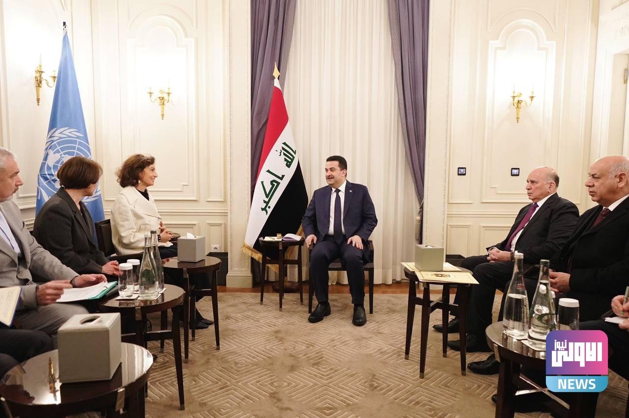 وذكر المكتب الإعلامي لرئيس مجلس الوزراء، في بيان تلقته (الاولى نيوز )، أن “رئيس مجلس الوزراء محمد شياع السوداني، التقى في مقر إقامته بالعاصمة باريس، المديرة العامة لمنظمة الأمم المتحدة للتربية والعلم والثقافة (اليونسكو) اودريه ازولاي، بحضور وزير الخارجية ووزير الثقافة والسفير العراقي في باريس”.
