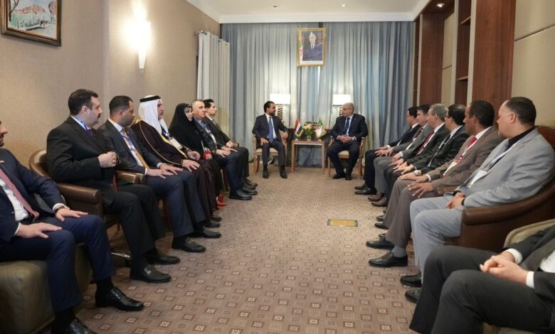 وذكر المكتب الإعلامي لرئيس مجلس النواب، في بيان، تلقته، (الاولى نيوز)، أن “الحلبوسي والوفد المرافق له، التقى برئيس المجلس الشعبي الوطني الجزائري إبراهيم بوغالي، على هامش مؤتمر اتحاد مجالس الدول الأعضاء بمنظمة التعاون الإسلامي المنعقد في الجزائر”.