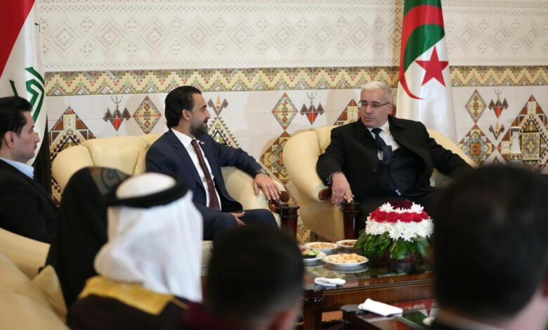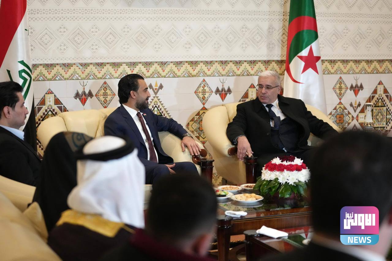 وذكر بيان للمكتب الإعلامي لرئيس مجلس النواب، تلقته (الاولى نيوز)، أن “رئيس مجلس النواب محمد الحلبوسي وصل إلى الجزائر يرافقه وفد نيابي يضم نائب الرئيس شاخوان عبد الله وعدداً من النواب، حيث كان في استقباله رئيس المجلس الشعبي الوطني الجزائري إبراهيم بوغالي”.
