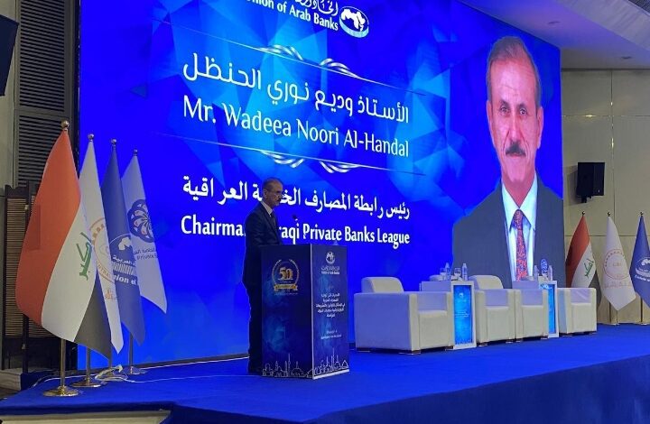 وتابع، أن “هذا المؤتمر یناقش، أھمیة انفتاح المصارف العراقیة، على المصارف الدولیة، وعمل شراكات مھمة، تنعكس بشكل إیجابي على عملھم داخل البلاد، إذ إن الشراكة مع اتحاد المصارف العربیة، تأتي في وضع ستراتیجیة، حول قیام المصارف العراقیة، باعتماد عدد من المصارف العربیة والأجنبیة كبنوك مراسلة لھا، لتمویل التجارة العراقیة، خصوصا أن البنك المركزي قرر إلغاء العمل بمنصة الدولار نھایة العام الحالي، وھذا ما سیؤثر بشكل أكبر في ھذه البنوك التي ما زالت تعمل حتى الآن بالاعتماد على بنوك مراسلة أجنبیة محدودة”.