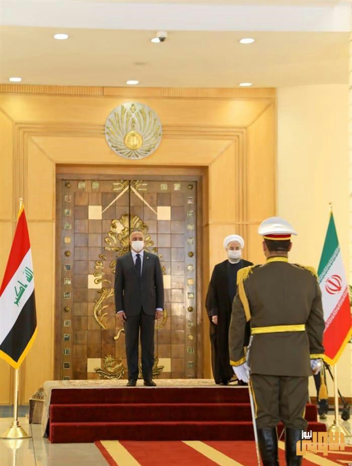 وفي وقت سابق من اليوم، بدأت مراسيم الاستقبال الرسمي لرئيس مجلس الوزراء، مصطفى الكاظمي، في طهران، ولقاء الرئيس الإيراني حسن روحاني.