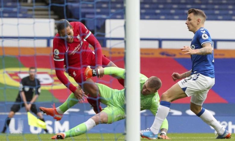 وخرج مدافع ليفربول الهولندي فيرجيل فان دايك من المباراة مبكراً بسبب الإصابة بعد التحام مع حارس مرمى إيفرتون جوردان بيكفورد.