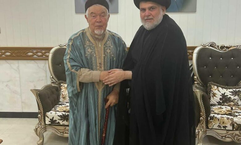زعيم التيار الصدري مقتدى الصدر مع المستبصر التونسي محمد التيجاني