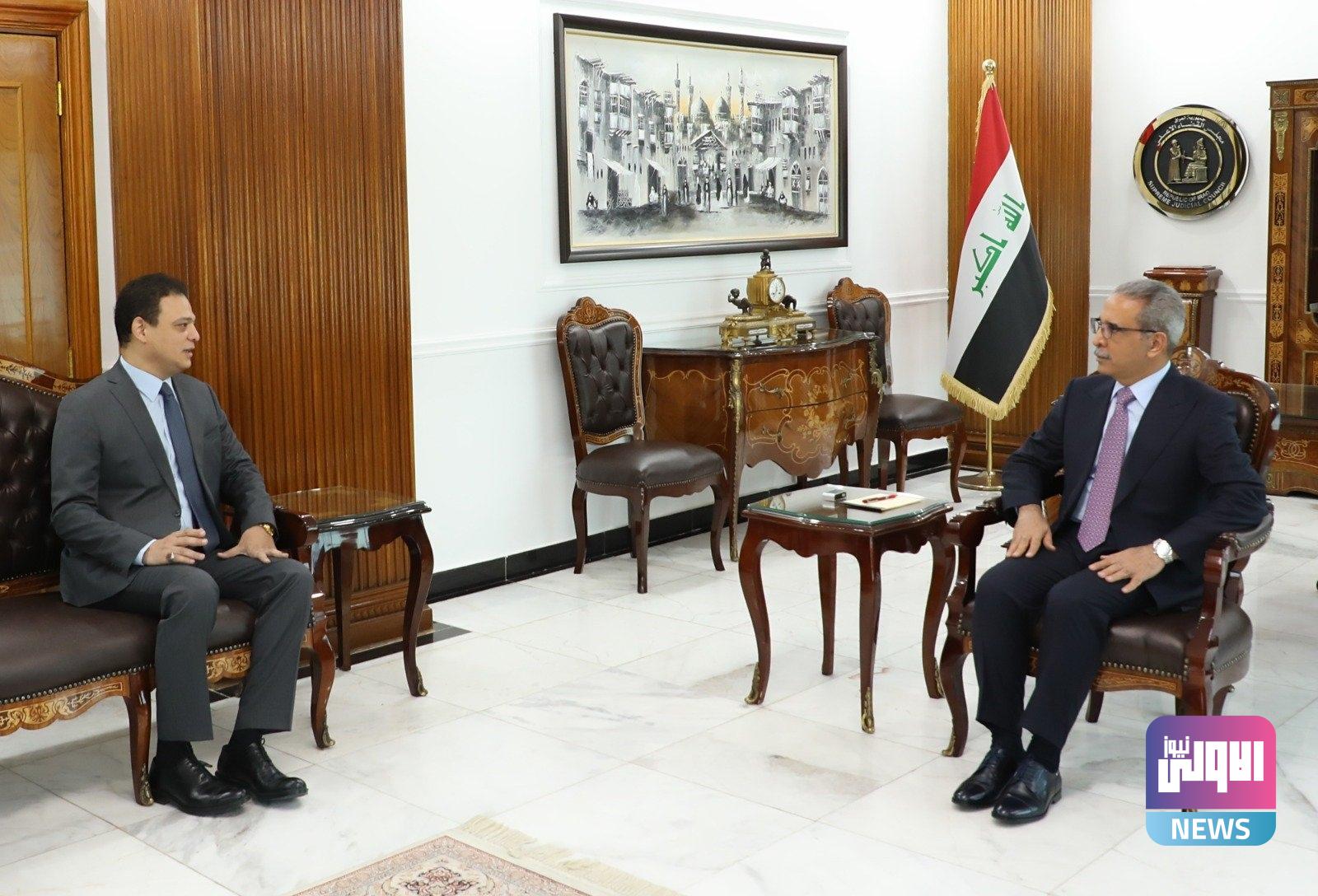 زيدان والسفير المصري يبحثان متابعة قضايا المصريين المعروضة على المحاكم العراقية