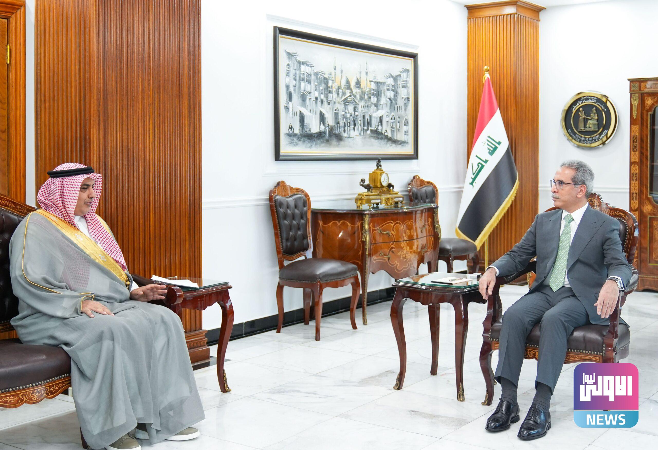 بحث رئيس مجلس القضاء الأعلى، فائق زيدان، اليوم الخميس، مع السفير السعودي لدى العراق عبد العزيز الشمري، عدداً من الملفات القانونية المشتركة.