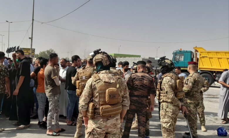 سائقو عجلات الحمل يقطعون طريقاً رئيساً في الديوانية (صور)