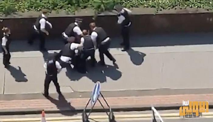 ويظهر الرجل في الفيديو أثناء طرحه فوق الرصيف في أحد شوارع العاصمة البريطانية لندن، بعدما حاول نحو 8 ضباط تقييده عقب مطاردة قصيرة، بحسب صحيفة “ديلي ميل” البريطانية.