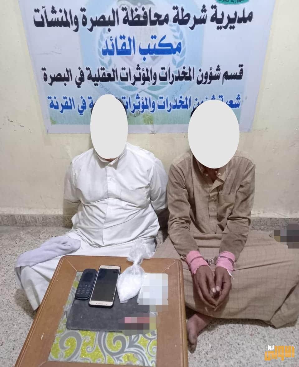 شرطة البصرة :مفارز قسم شؤون المخدرات تلقي القبض على متهمين اثنين بحوزتهم مواد مخدرة