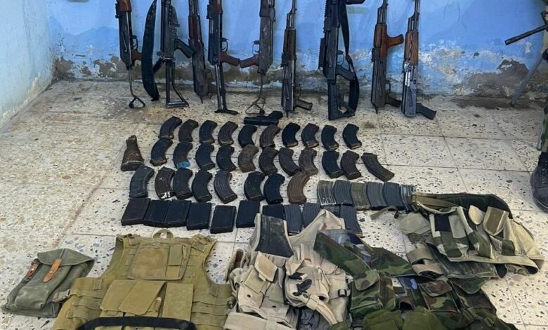 ورمانة يدوية عدد (3) ، فيما تم ضبط عتاد خفيف عدد (505) وجعبة صدرية عدد (5)، وتمت إحالة المضبوطات على الجهات المختصة.