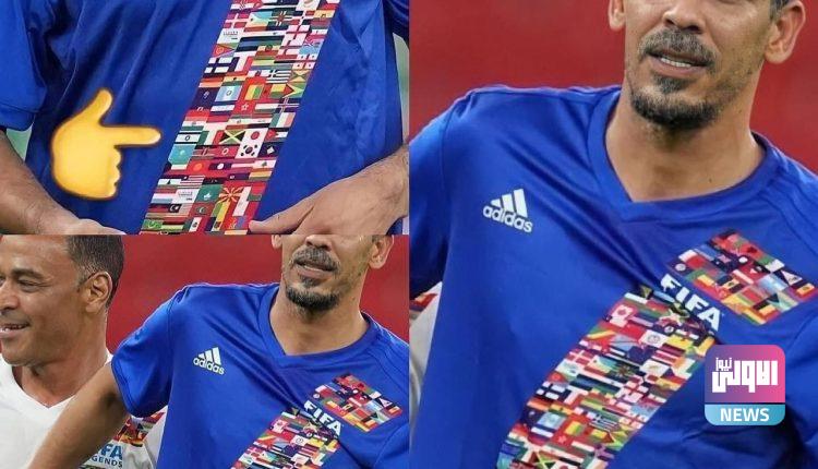 وقام يونس محمود بشطب علم الكيان الصهيوني، في مبارة الأساطير بين نجوم العالم ونجوم العرب كما موضح في الصورة.