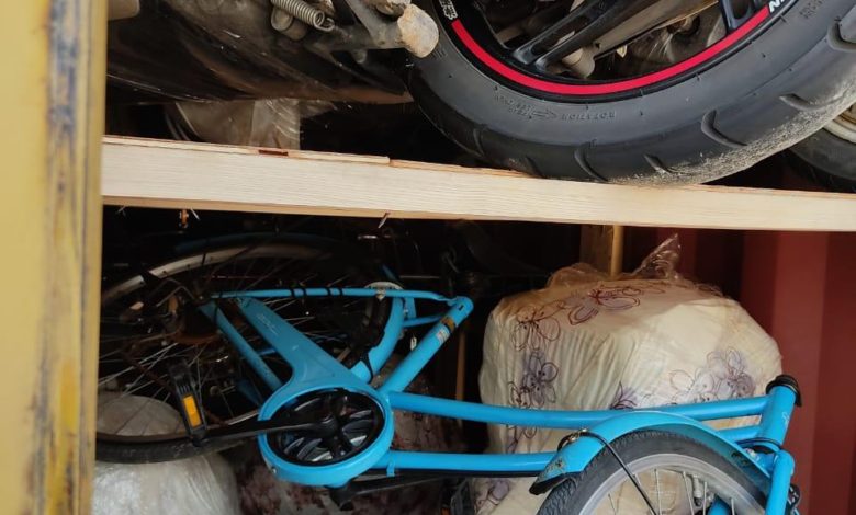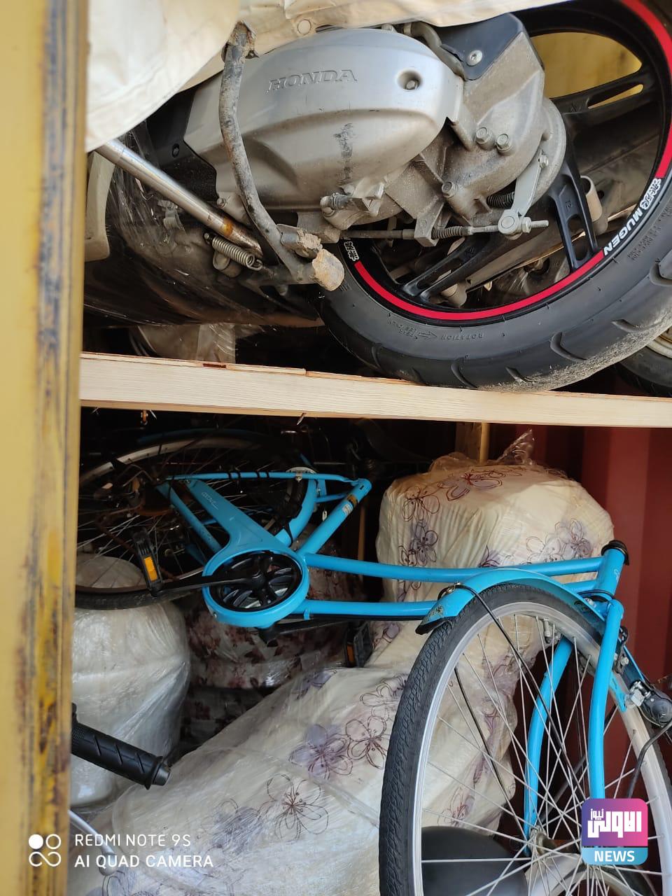 زجاج عجلات منشأ آسيوي ) وبعد تدقيق المعاملة الجمركية والكشف عليها من قبل اللجنة المشكلة، تبين أن الحاوية تحتوي بداخلها دراجات “هوائية ونارية جديدة” غير مصرح بها وكذلك وجود تزوير في الأختام”.