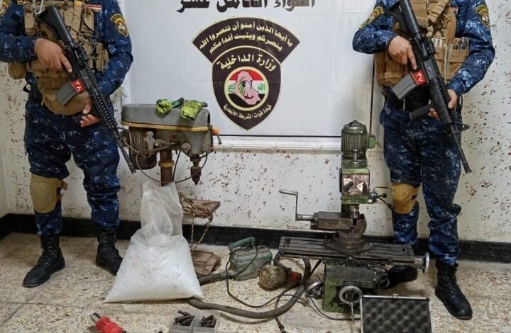 أعلنت وزارة الداخلية، اليوم الجمعة، ضبط معمل لتحوير الأسلحة الخفيفة والمتوسطة خلال عملية تفتيش شرقي بغداد.