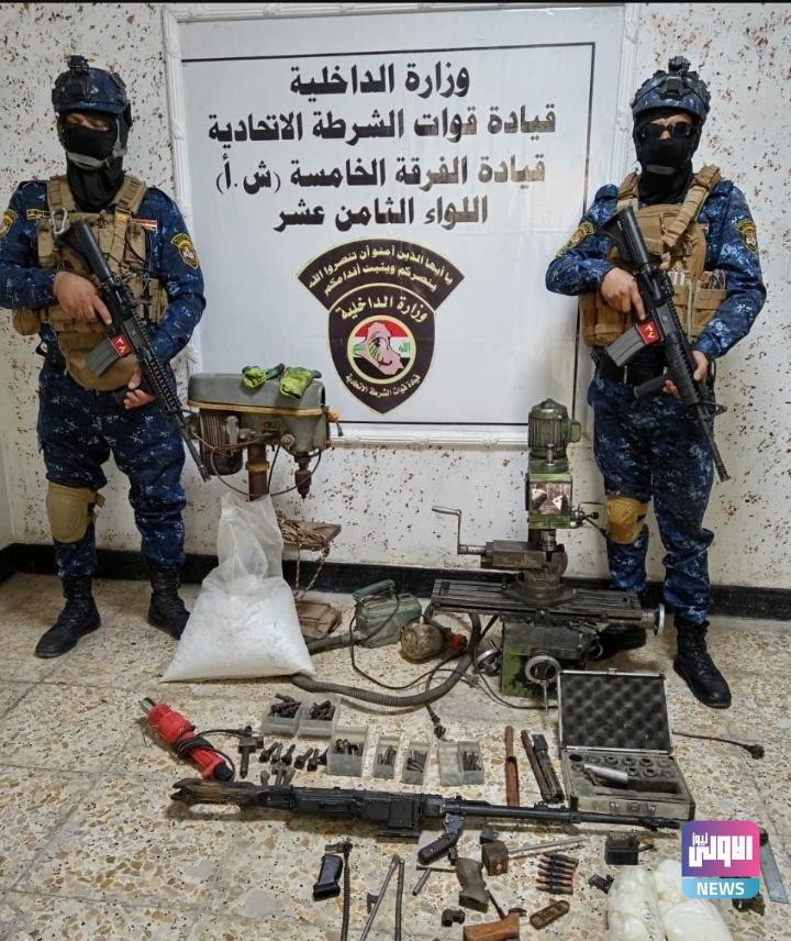 وقال بيان للوزارة تلقته (الاولى نيوز): إن” قوة من اللواء الثامن عشر الفرقة الخامسة شرطة اتحادية و بإسناد مفارز الجهد الاستخباري نفّذت عملية تفتيش عن السلاح غير المرخص في منطقة (مدينة الصدر)، أسفرت عن العثور على معمل لتحوير وصيانة الأسلحة الخفيفة والمتوسطة، وضبط قطع غيار أسلحة متنوعة، أدوات وعُدد متنوعة”.