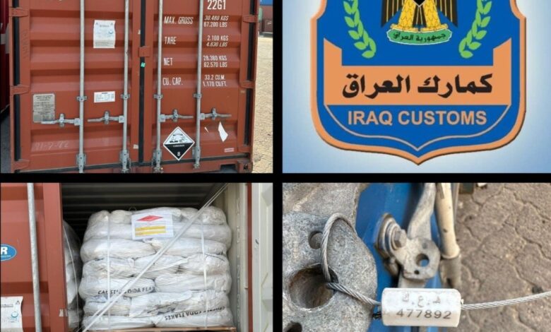 ضبط 3 حاويات تحتوي مواد خطرة في جمرك بوابة البصرة