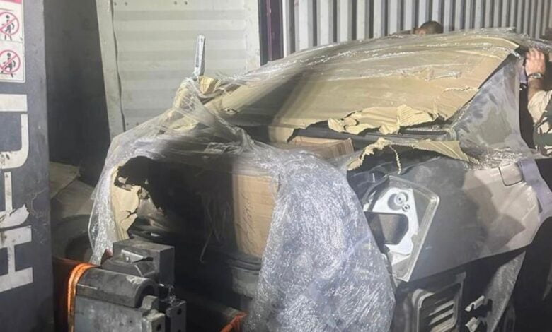 وذكر بيان للهيئة تلقته (الاولى نيوز)، أن “منفذ ميناء أم قصر الأوسط تمكن من ضبط حاوية بحجم 40 قدماً في نقطة البحث والتحري خارج الحرم الجمركي، تحتوي على 3 عجلات مفككة الأجزاء دون الموديل نوع (BMW + مرسيدس + تاهو) مع جميع محتوياتها”.